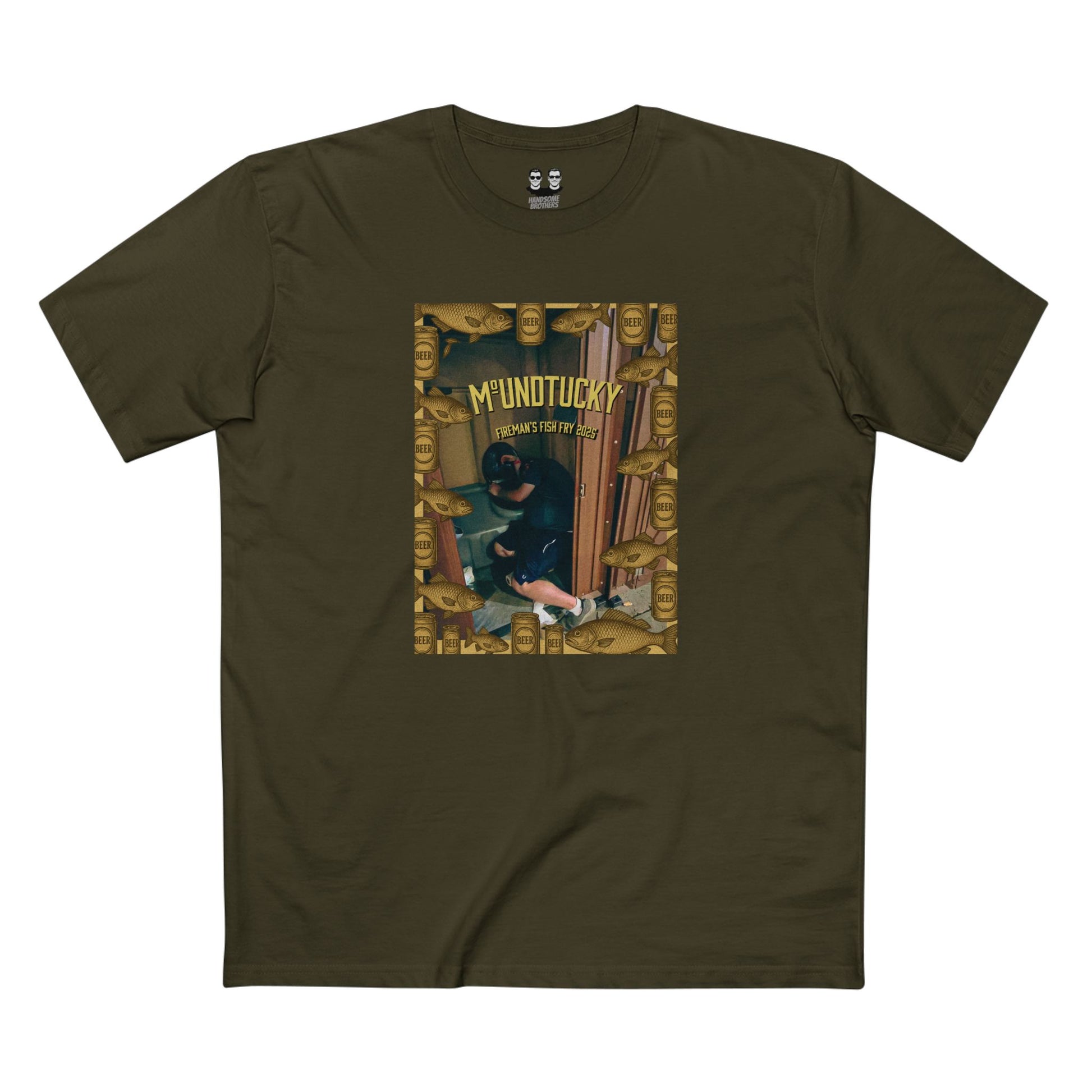 The official T-shirt of questionable life choices. Celebrate the legendary (and mildly traumatic) Moundtucky Fish Fry with this commemorative tee featuring a brave soul mid-puke in a port-a-potty. Perfect for fans of fried fish, poor judgment, and gastrointestinal regret. Printed on high-quality cotton so you can sweat through it in style. Limited edition—just like your dignity after the second plate of crappie.