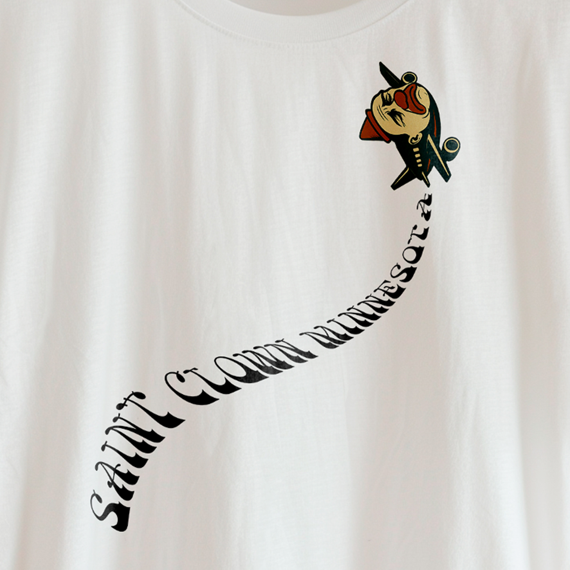 This shirt features a plane with a clown face, because honestly? That makes as much sense as anything that happens in St. Cloud. It’s part surreal artwork, part civic commentary, part emotional support cotton.