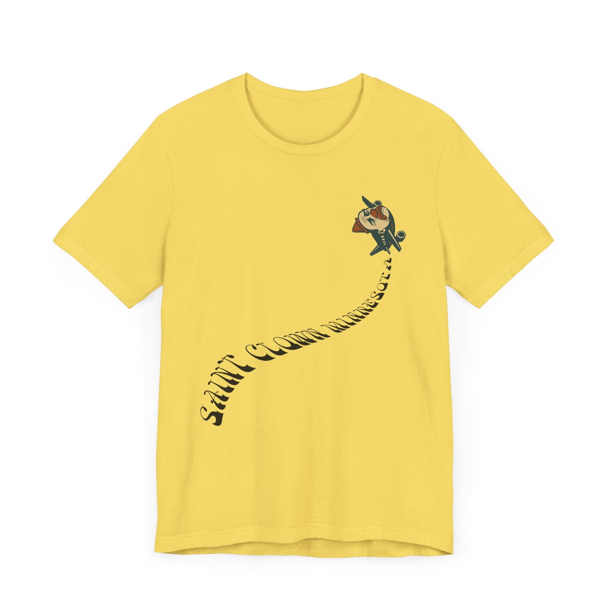 This shirt features a plane with a clown face, because honestly? That makes as much sense as anything that happens in St. Cloud. It’s part surreal artwork, part civic commentary, part emotional support cotton.